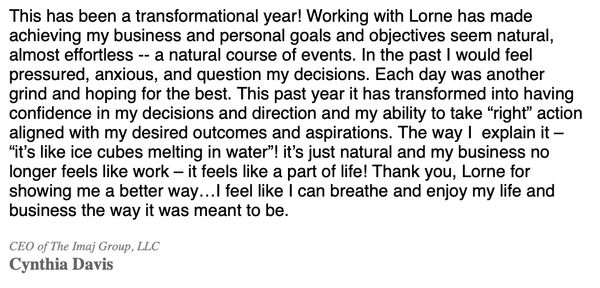 Set yourself up for success with Lorne! As an experienced entrepreneur and certified business coach, he will guide you there quicker and with more ease and fun than doing it on your own.